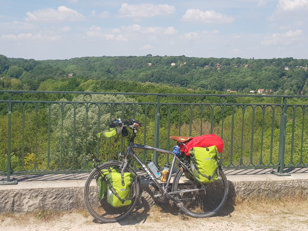 So out of Paris, along a wonderful off road tarred path which wanders its way out of Paris, the coulie vert. Quick pause first as close by velo shop for a 6euro inner tube, don’t think repair on old one easy.