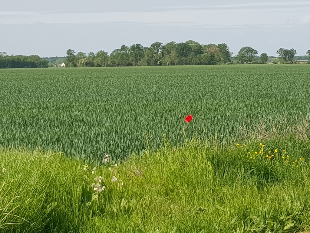 The first half if the day was a long cycle paths and then out over the plain….gently undulating fields with wheat waving in the wind.