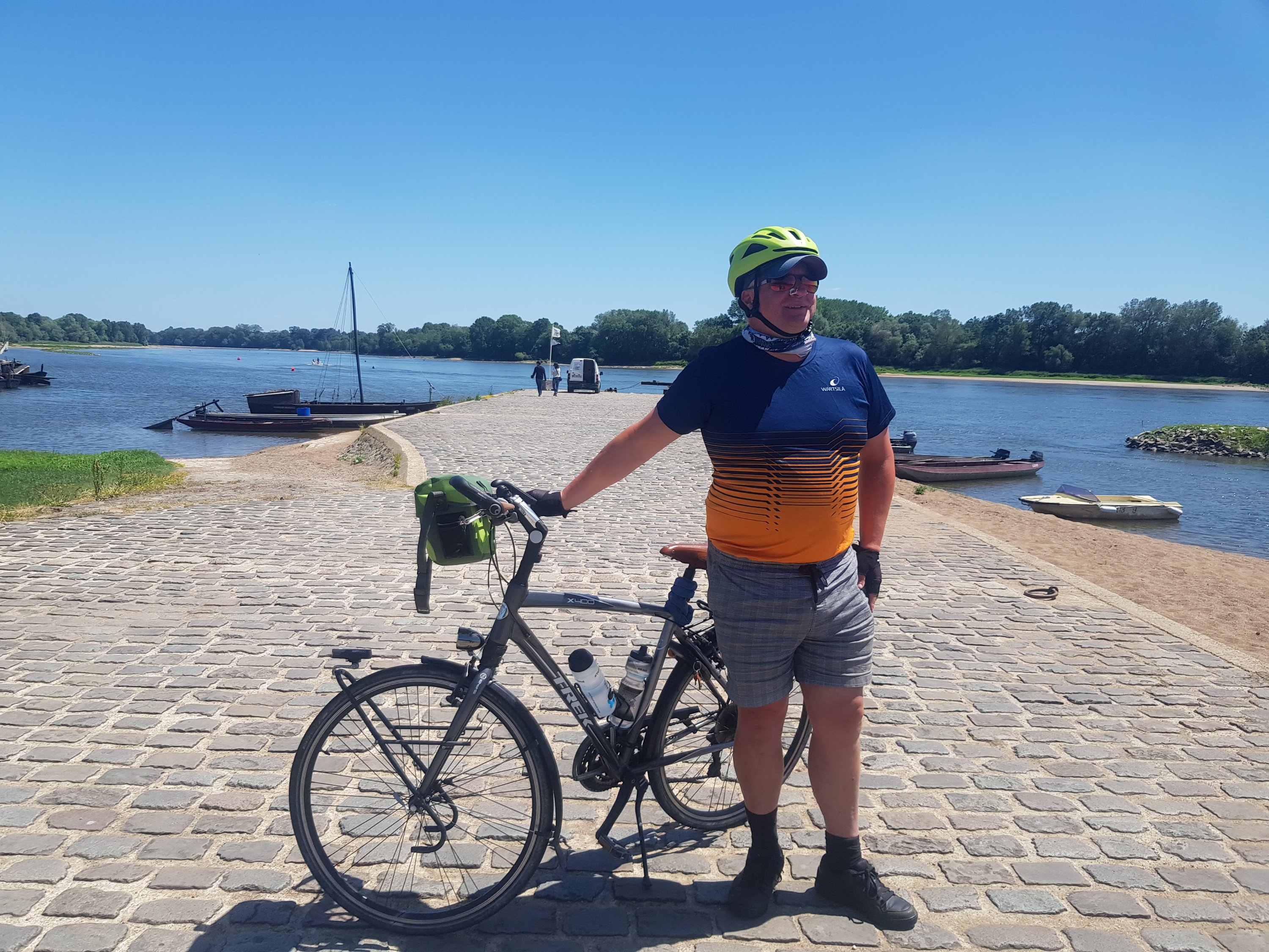 Decided to take a Day off here so cycled back north over the three bridges again and turned right towards La Possonnière, having no load on the bike apart from bar bag and flat smooth empty road enabled a real lick on. So did not take long to La possonniere to arrive…and it is an old jetty where trading saling boats used to stop. There was a bar/snack bar here..so paused a while.