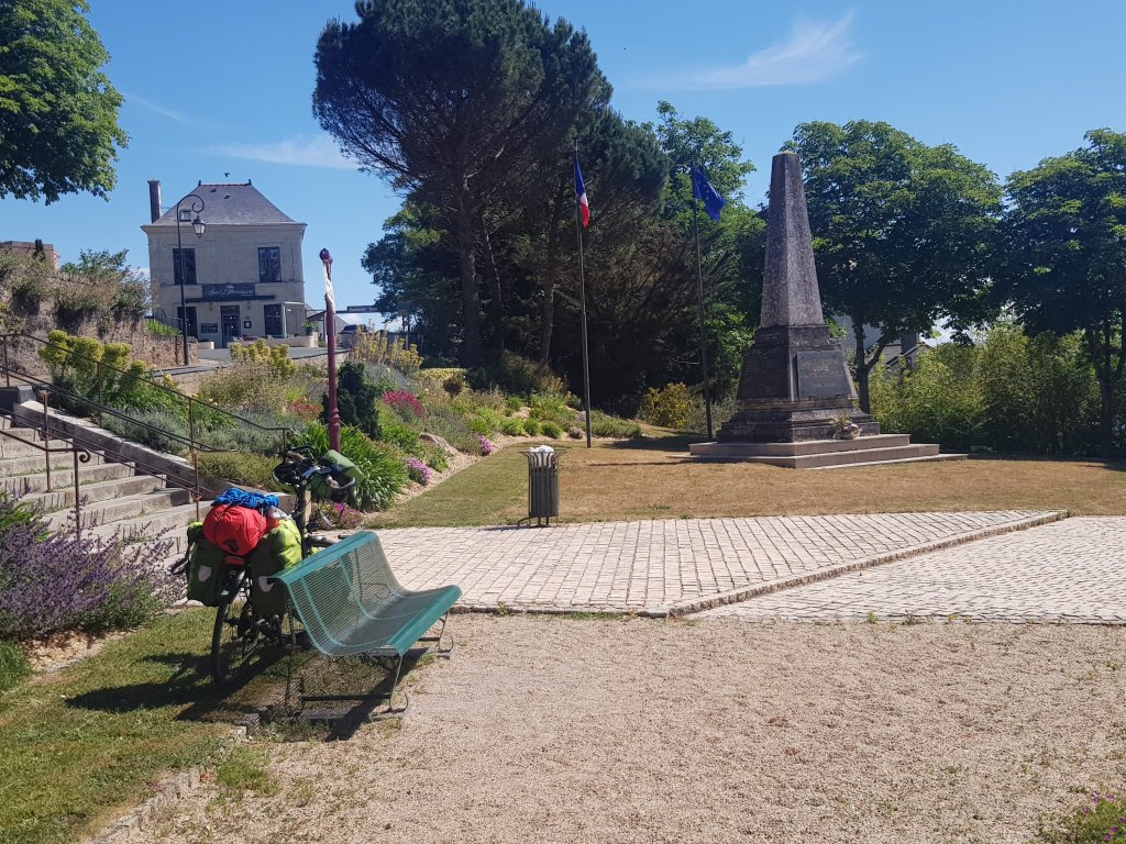 After a climb through some tiny villages found an epicery so managed to buy the makings of lunch which I consumed later in brissac quince in a memorial garden adjacent to the chataue